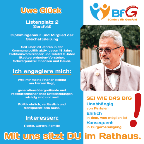 Gersfeld hat sich bewusst auf wenige, zukunftsfähige Projekte konzentriert. Öffentliche Mittel werden gezielt und verantwortungsvoll eingesetzt. Die Stadtverwaltung arbeitet effizient, transparent und bürgernah. Politische Entscheidungen werden stets auf ihre langfristige Wirkung geprüft – ökologisch, wirtschaftlich und sozial.